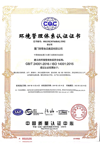 銀鷺自2007年12月24日獲得國際環境管理體系認證,并吸收借鑒世界食品巨頭雀巢的產品生產周期的環境管理方法,建立從研發到市場全過程的環境管理體系。目前已升級并通過ISO14001:2015國際環境管理體系。