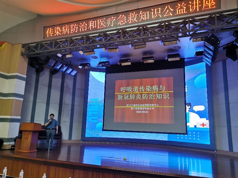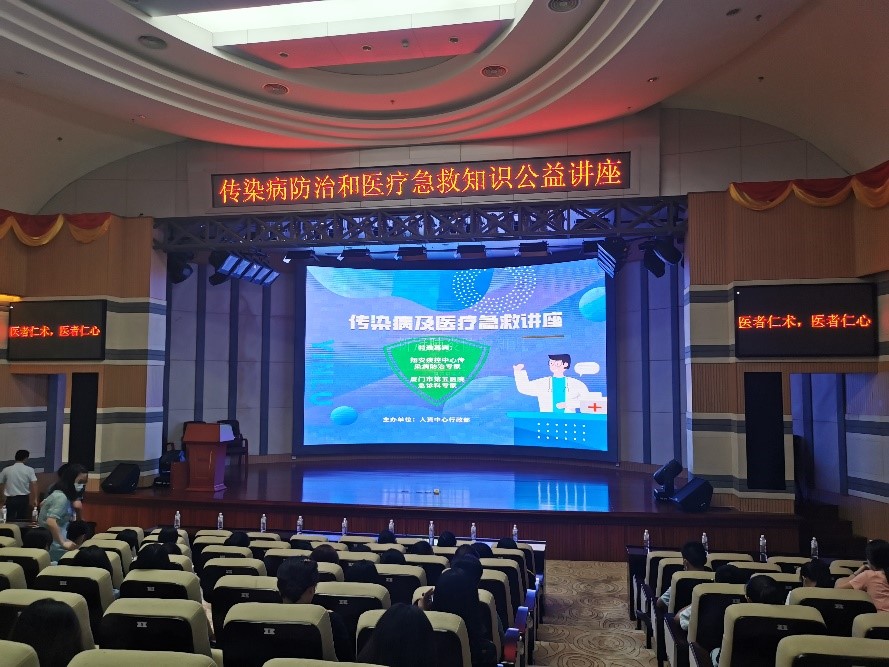 講座于9月2日下午在總部3F大禮堂進行,翔安區(qū)疾控中心傳染病防治專家葉醫(yī)師、廈門市第五醫(yī)院急診科張護士及其團隊為大家授課。