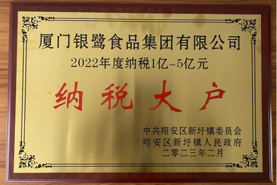 喜訊!銀鷺食品榮獲“翔安區新圩鎮2022年度納稅大戶”獎牌